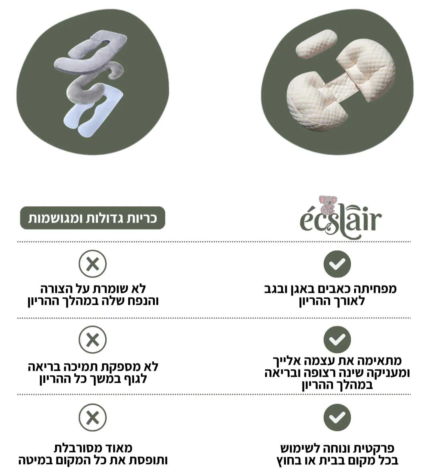 הכרית שלנו מציעה פתרון ייחודי ונוח שתומך בך בכל שלב בהריון וגם אחריו.