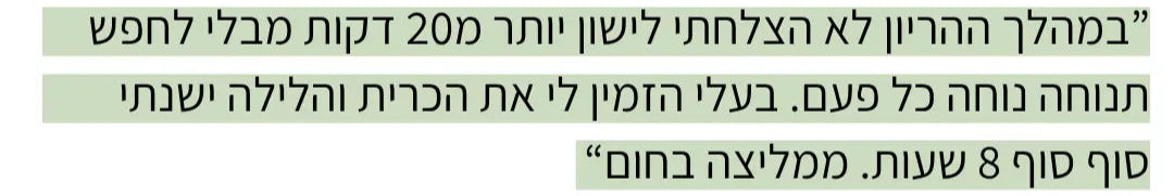 מהנשים אמרו שכבר מהשימוש הראשון הן הצליחו לישון לילה שלם מבלי לקום מחוסר נוחות.